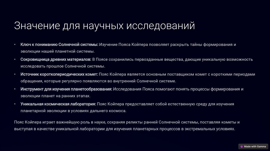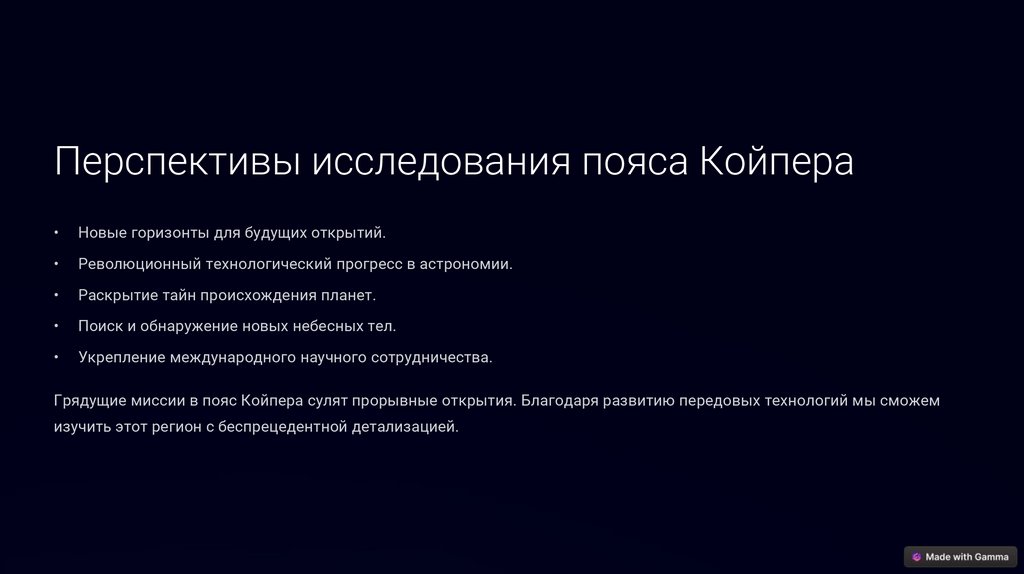 ЗаключениеПояс Койпера остается одним из самых интригующих и