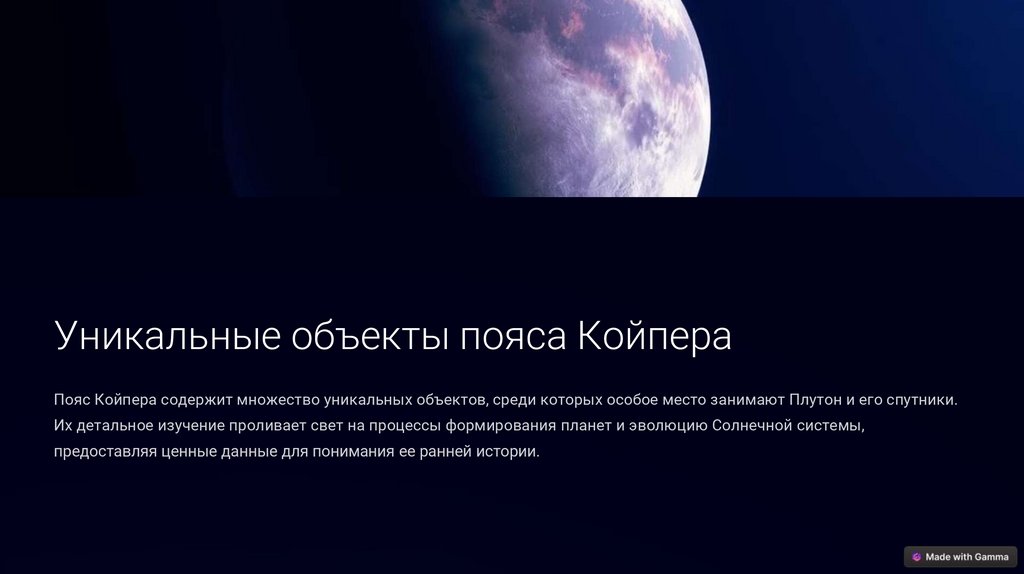 Уникальные объекты пояса КойпераПояс Койпера содержит множество уникальных объектов, среди которых особое место занимают Плутон и его спутники.