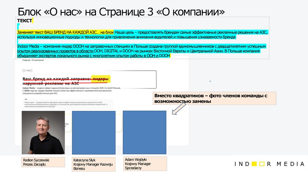 Заменяет текст ВАШ БРЕНД НА КАЖДОЙ АЗС… на блок Наша цель – предоставлять брендам самые эффективные рекламные решения на АЗС,