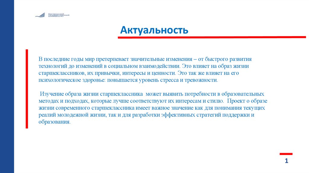жизни современного старшеклассника имеет важное значение как для понимания текущих