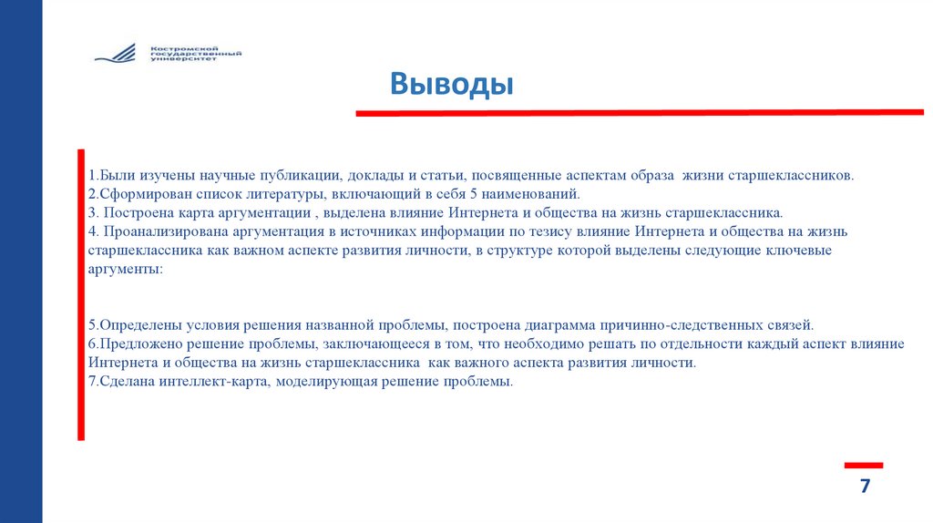 Выводы1.Были изучены научные публикации, доклады и статьи, посвященные аспектам образа жизни старшеклассников.