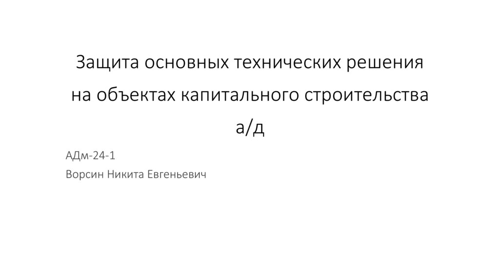 Защита основных технических решения на объектах капитального строительства а/д АДм-24-1