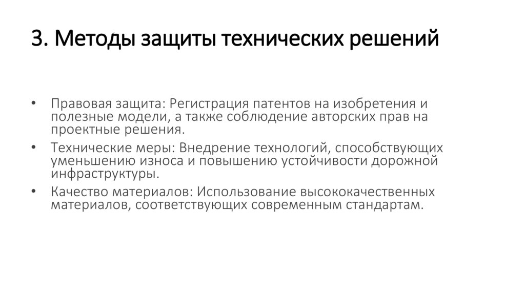 3. Методы защиты технических решений• Правовая защита: Регистрация патентов на изобретения и