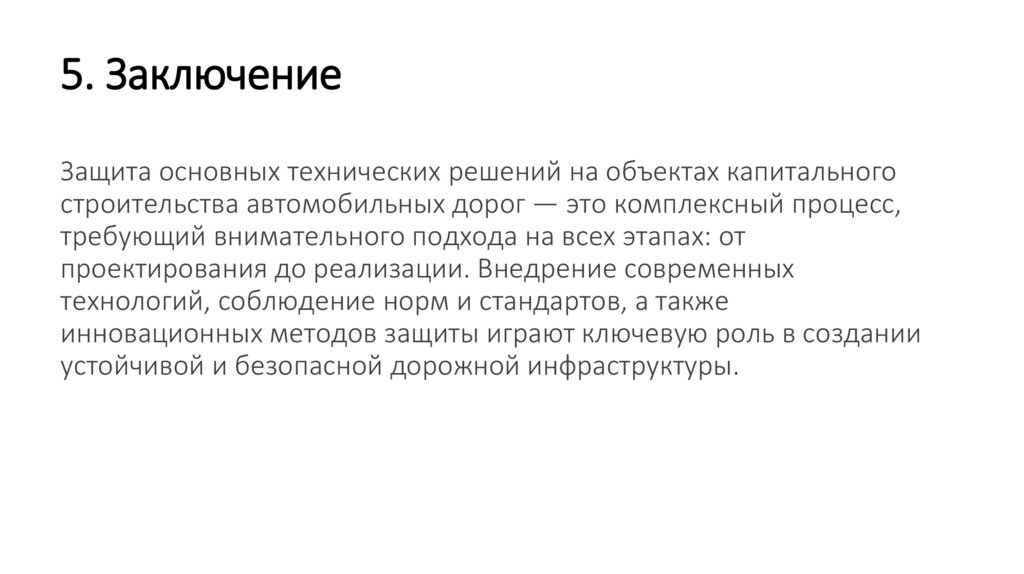 5. ЗаключениеЗащита основных технических решений на объектах капитального