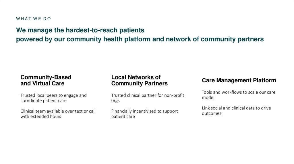 3. Care Management Platform Tools and workflows to scale our care model Link social and clinical data to drive outcomes