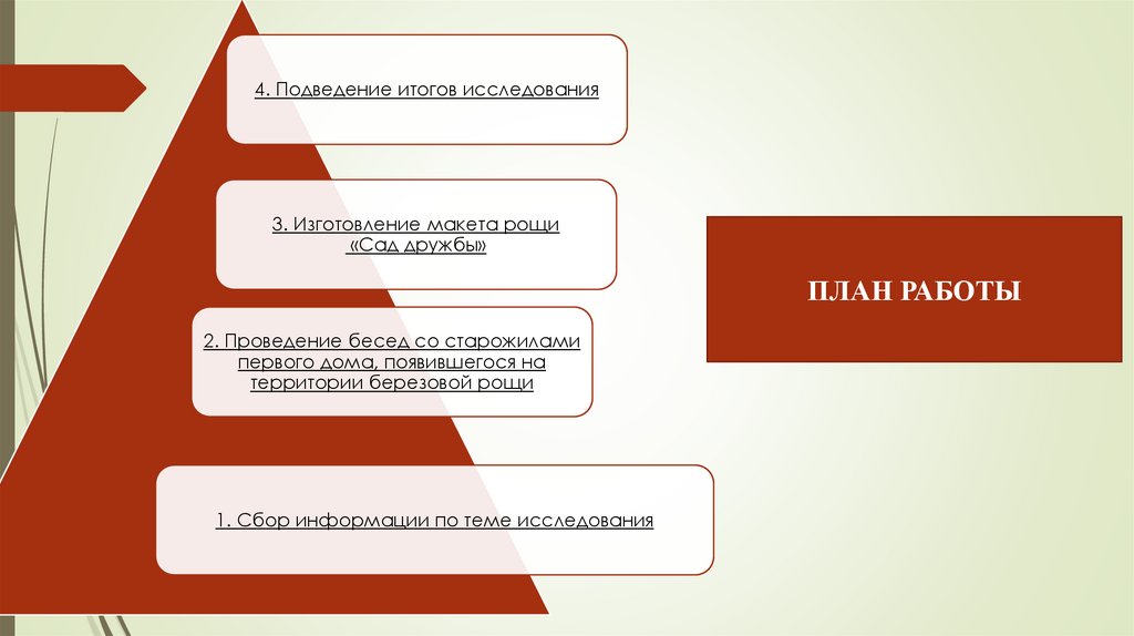 4. Подведение итогов исследования3. Изготовление макета рощи