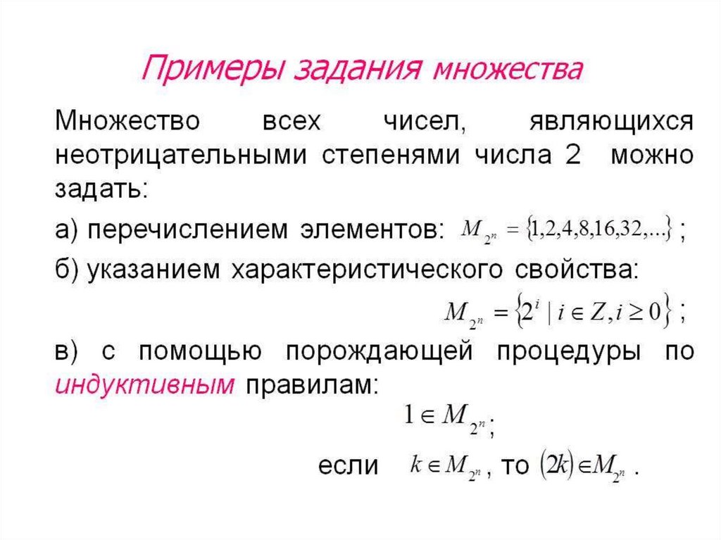 Множество считается заданным, если или перечисленывсе его элементы, или указано свойство, которым
