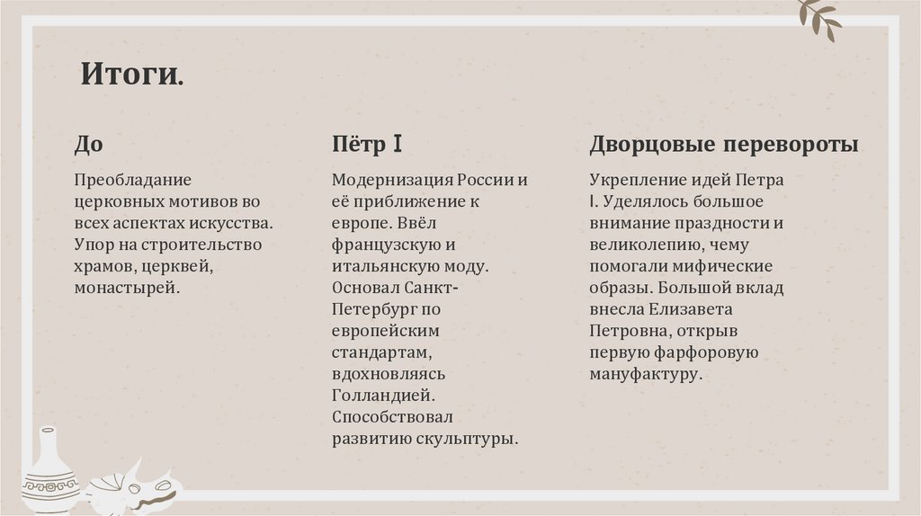 1. Изменения в архитектуре и искусстве при Петре I и в эпоху дворцовых переворотов.