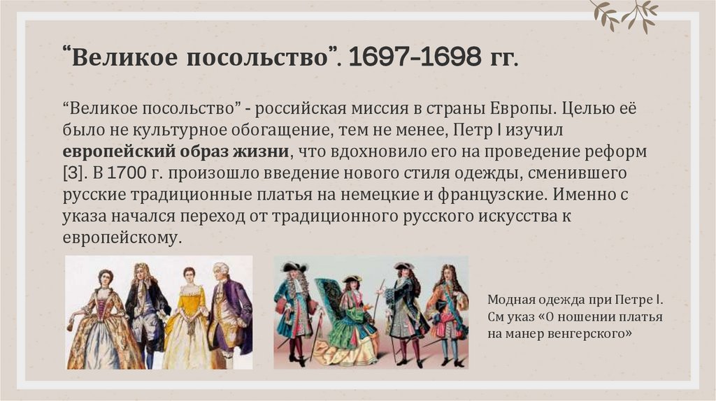 [3]. В 1700 г. произошло введение нового стиля одежды, сменившего