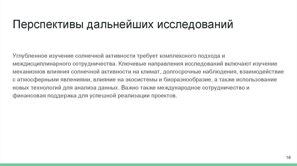 Перспективы дальнейших исследованийУглубленное изучение солнечной активности требует комплексного подхода и
