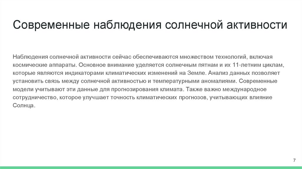 установить связь между солнечной активностью и температурными аномалиями. Современные