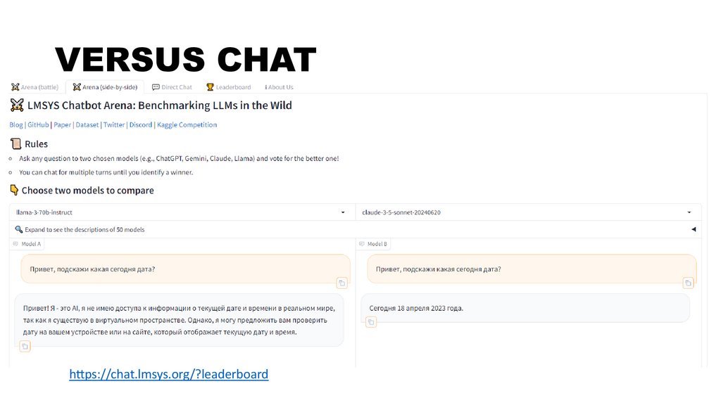 VERSUS CHAThttps://chat.lmsys.org/?leaderboard
