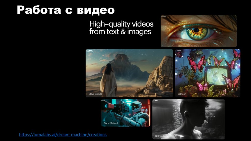Работа с видеоhttps://lumalabs.ai/dream-machine/creations
