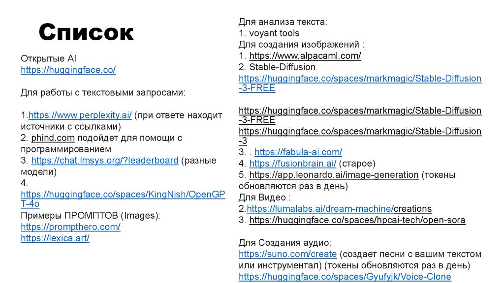 СписокОткрытые AI