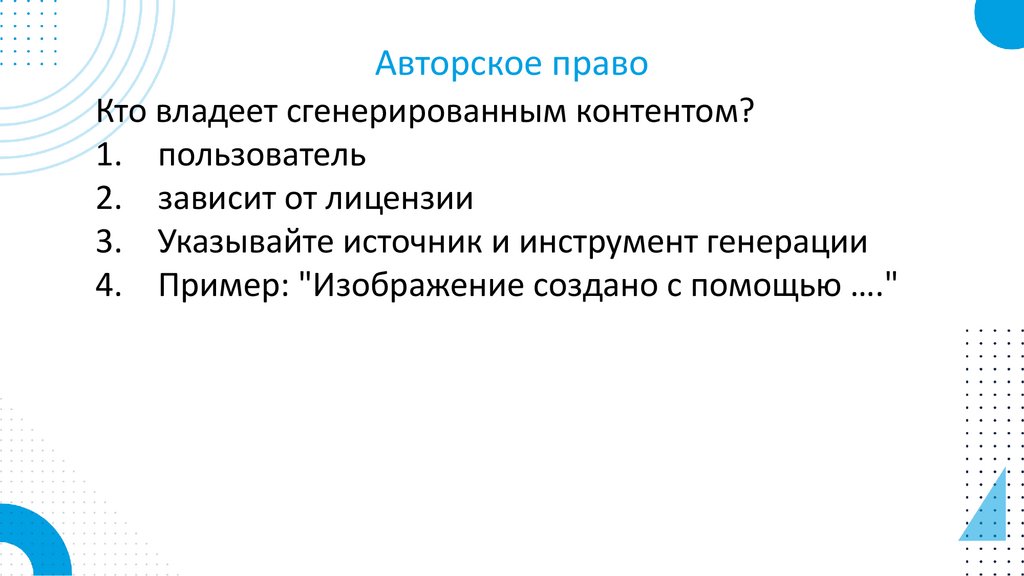 Авторское правоКто владеет сгенерированным контентом?