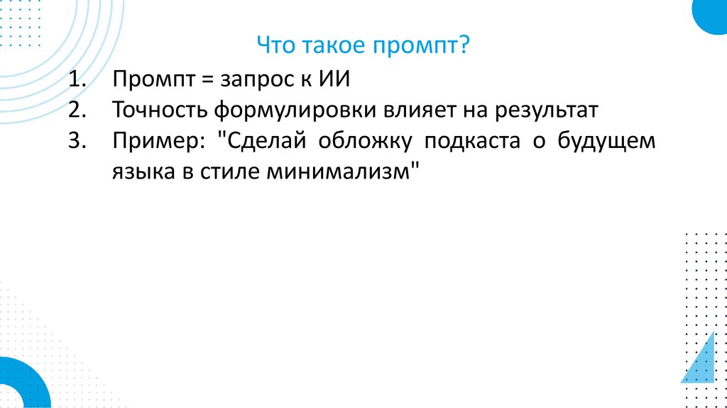Что такое промпт?1. Промпт = запрос к ИИ