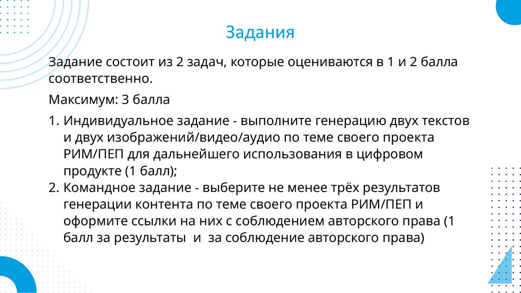 генерации контента по теме своего проекта РИМ/ПЕП и