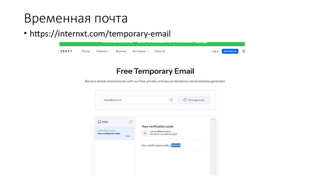 Временная почта• https://internxt.com/temporary-email