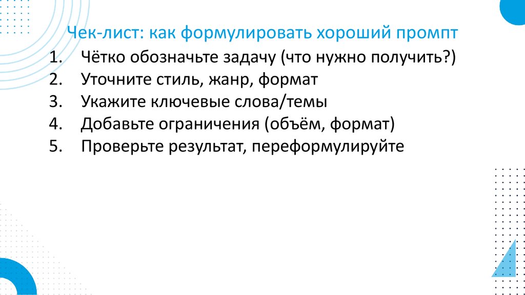 Чек-лист: как формулировать хороший промпт1.