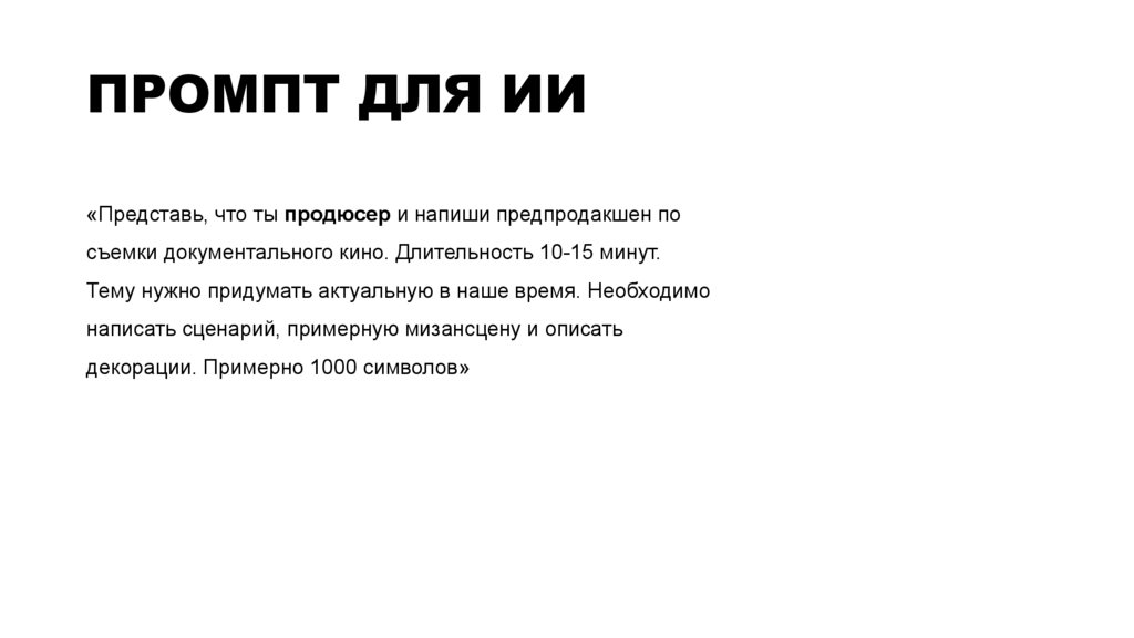 ПРОМПТ ДЛЯ ИИ«Представь, что ты продюсер и напиши предпродакшен по