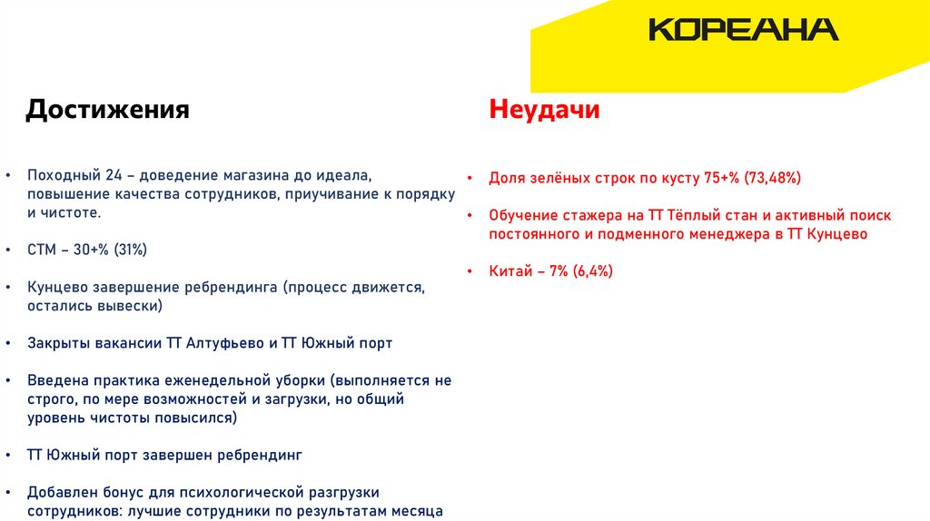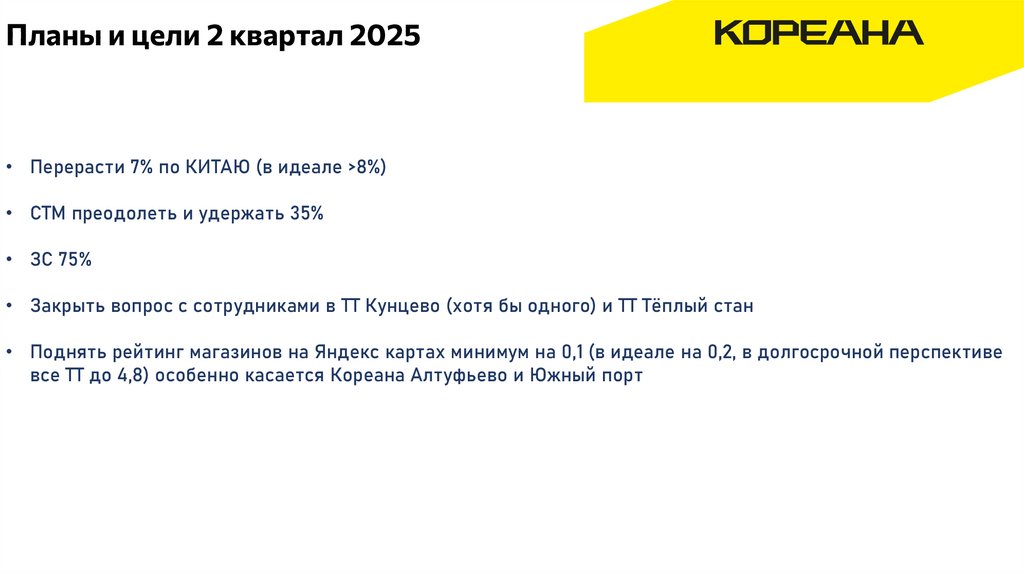 • Перерасти 7% по КИТАЮ (в идеале >8%)• СТМ преодолеть и удержать 35%