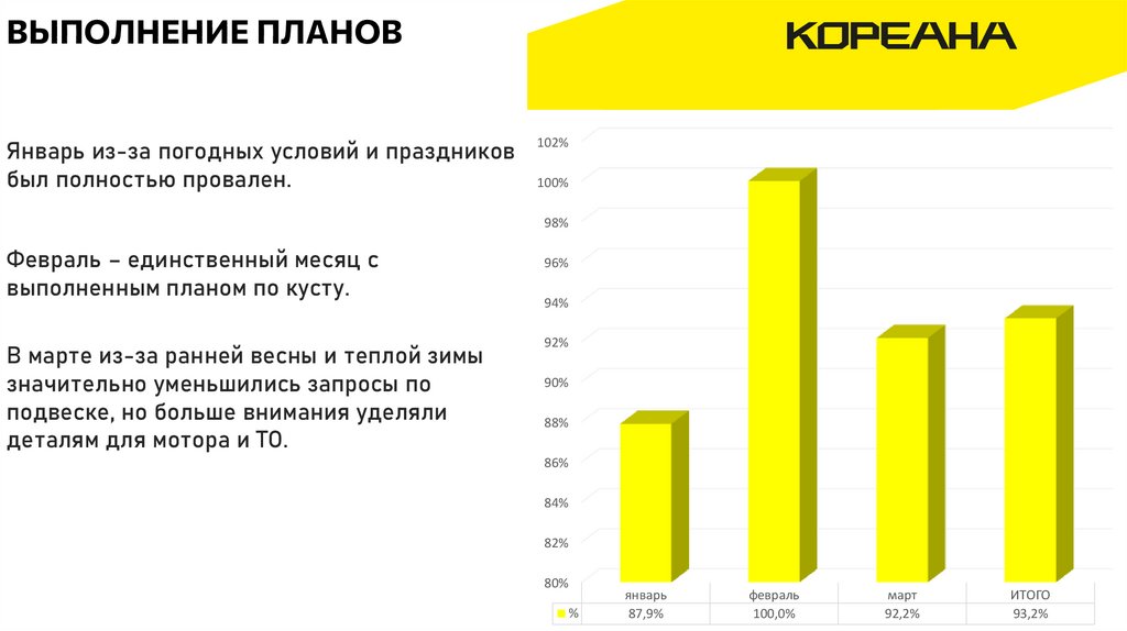 ВЫПОЛНЕНИЕ ПЛАНОВЯнварь из-за погодных условий и праздников