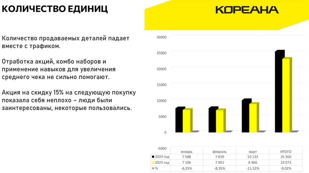 КОЛИЧЕСТВО ЕДИНИЦКоличество продаваемых деталей падает