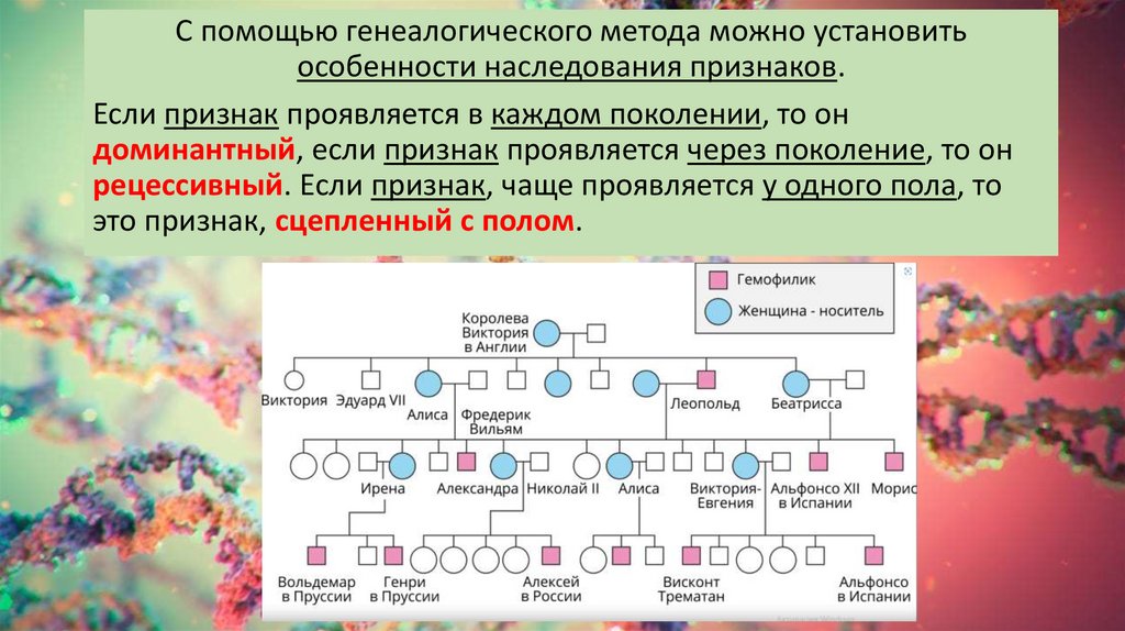 С помощью генеалогического метода можно установитьособенности наследования признаков.