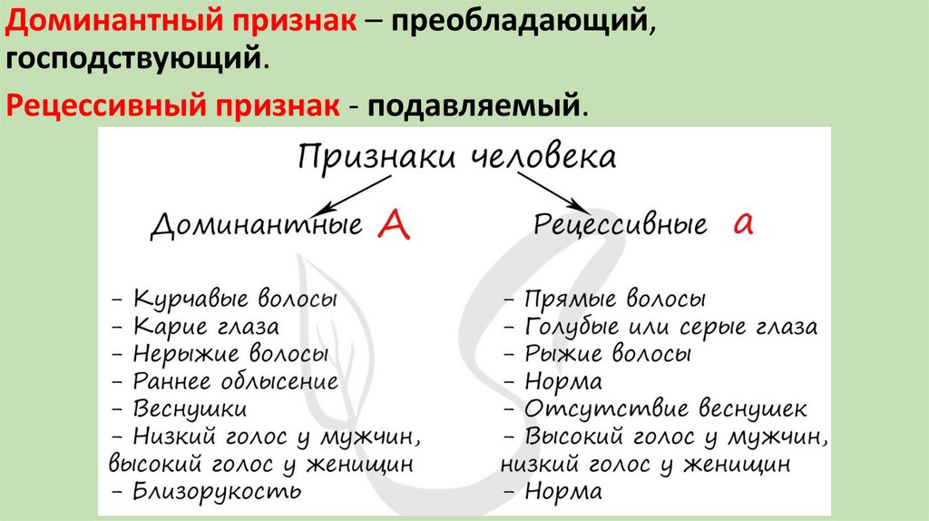 Доминантный признак – преобладающий,господствующий.