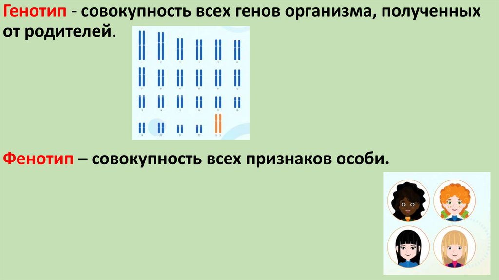 Генотип - совокупность всех генов организма, полученныхот родителей.