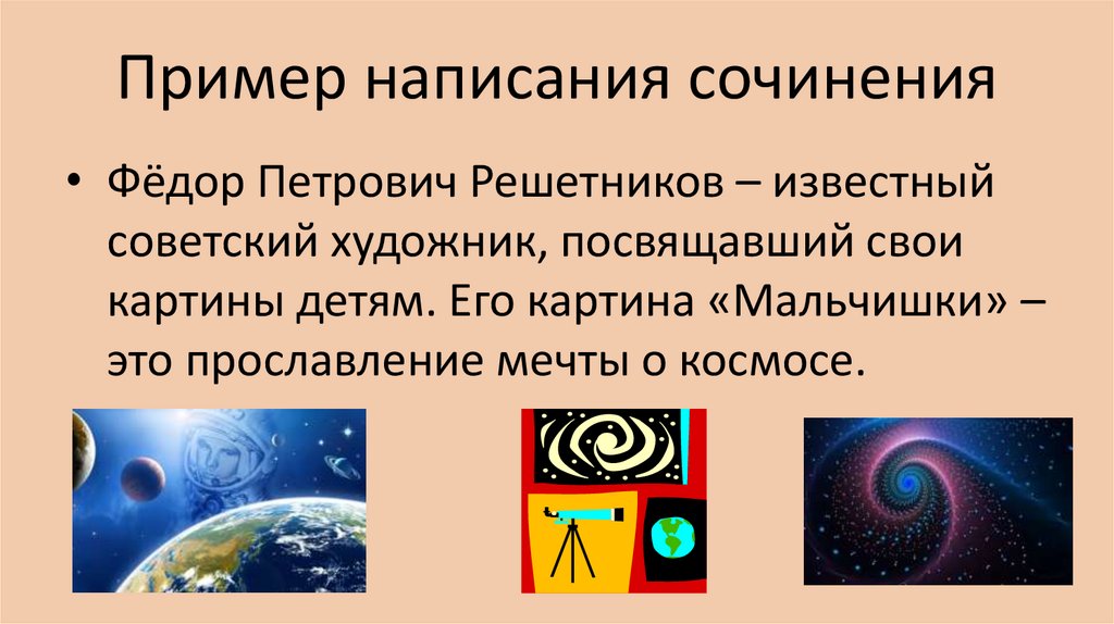 Пример написания сочинения• Фёдор Петрович Решетников – известный