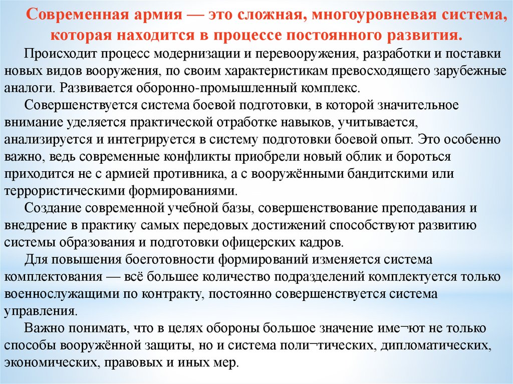 Преобразования, проходящие в Вооружённых Силах, и постоянноеих совершенствование необходимы для