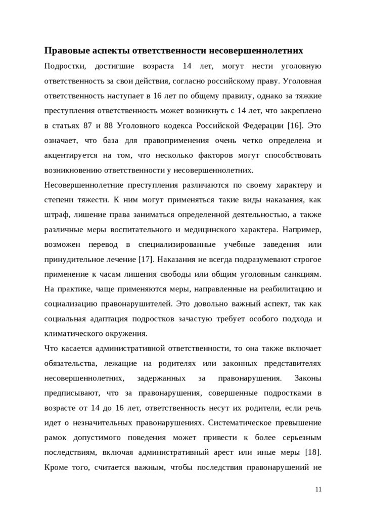 Правовые аспекты ответственности несовершеннолетних.................................................................