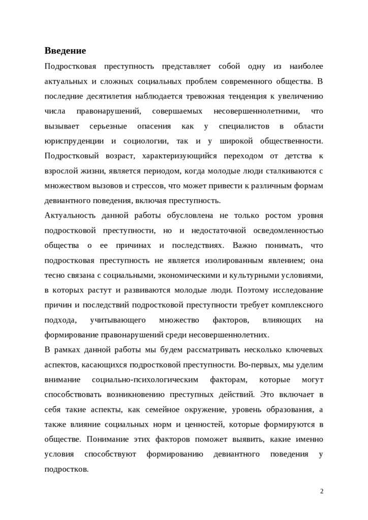 ВведениеПодростковая преступность представляет собой одну из наиболее