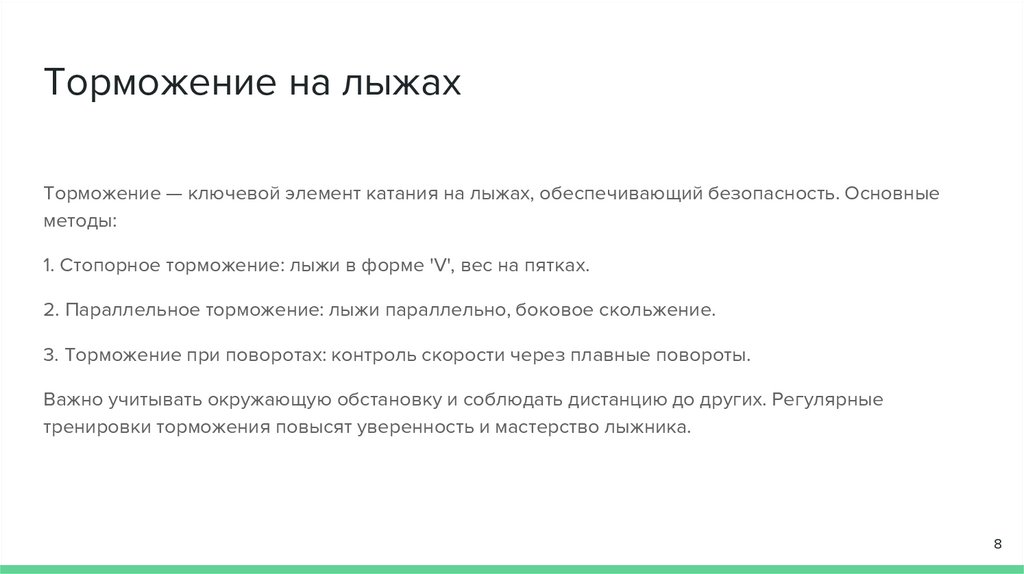 Торможение на лыжахТорможение — ключевой элемент катания на лыжах, обеспечивающий безопасность. Основные