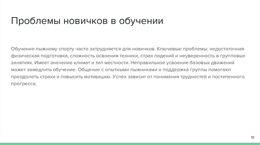 Проблемы новичков в обученииОбучение лыжному спорту часто затрудняется для новичков. Ключевые проблемы: недостаточная
