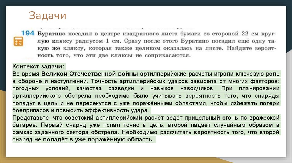 артиллерийского обстрела необходимо было учитывать вероятность того, что снаряды