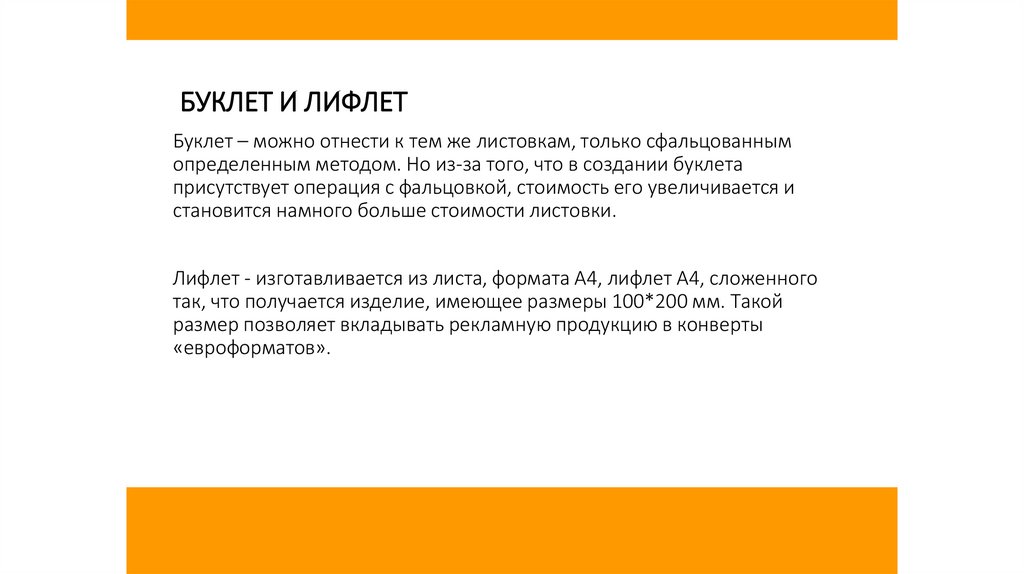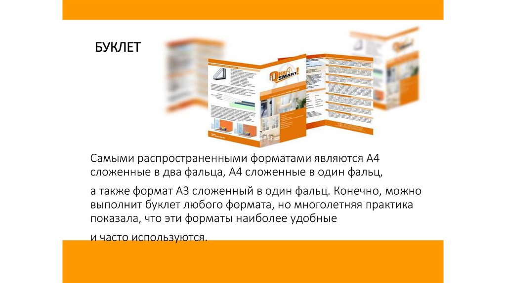 БУКЛЕТ И ЛИФЛЕТБуклет – можно отнести к тем же листовкам, только сфальцованным