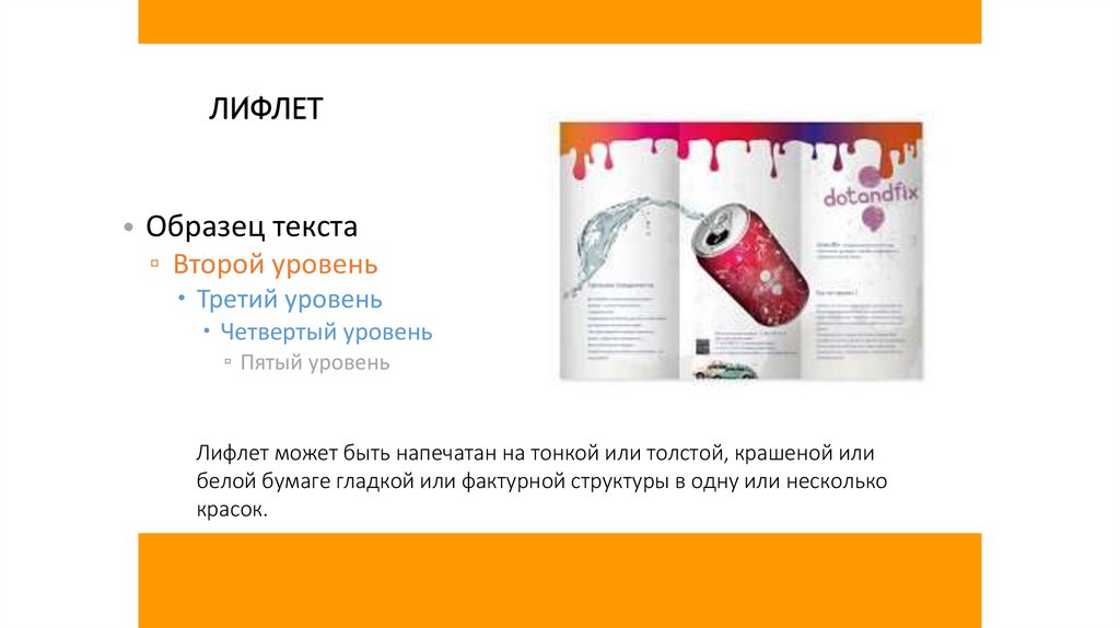 Лифлет может быть напечатан на тонкой или толстой, крашеной или