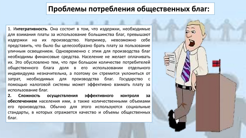 Проблемы потребления общественных благ:1. Интегративность. Она состоит в том, что издержки, необходимые