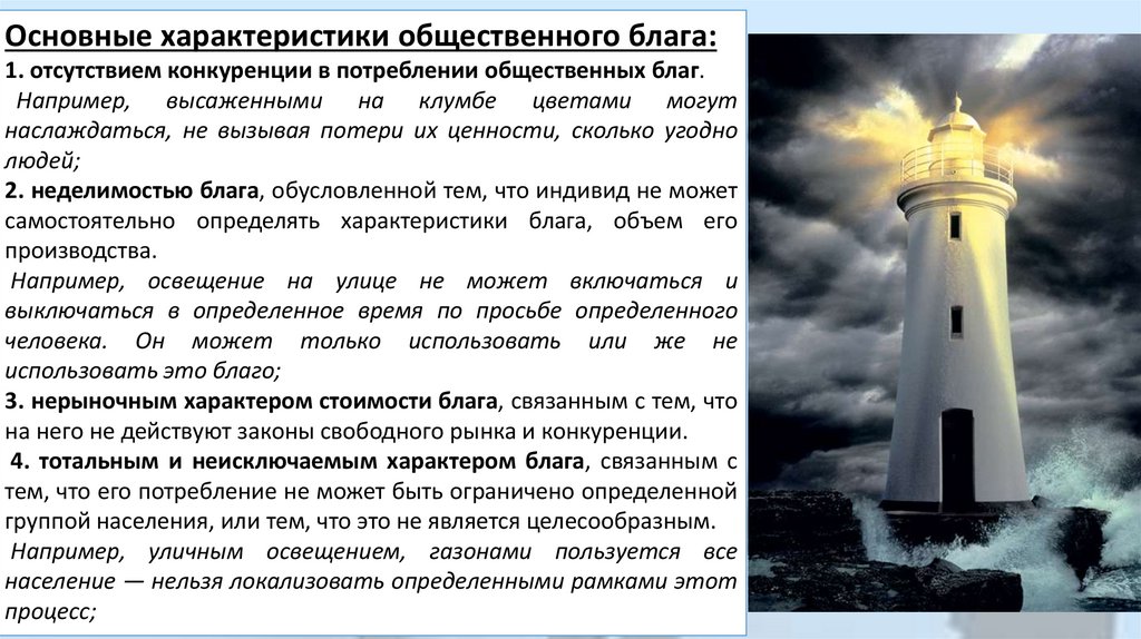 Основные характеристики общественного блага:1. отсутствием конкуренции в потреблении общественных благ.