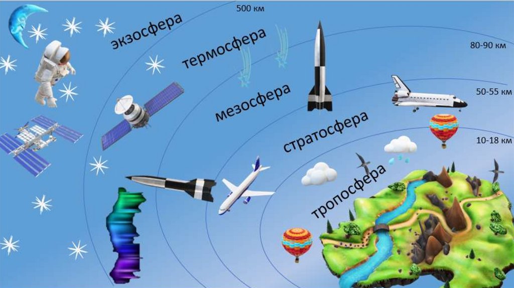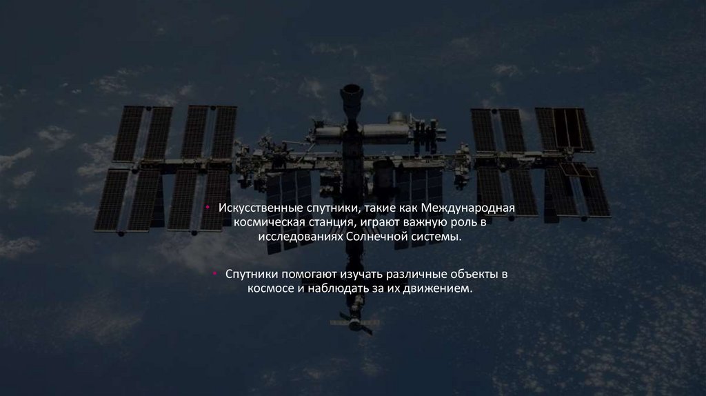 • Искусственные спутники, такие как Международнаякосмическая станция, играют важную роль в