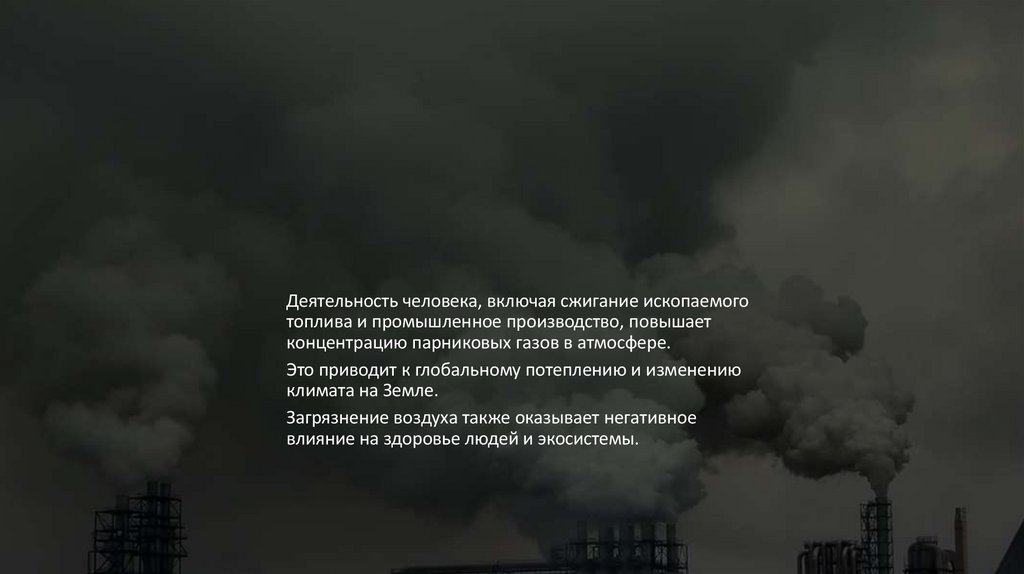 Деятельность человека, включая сжигание ископаемоготоплива и промышленное производство, повышает