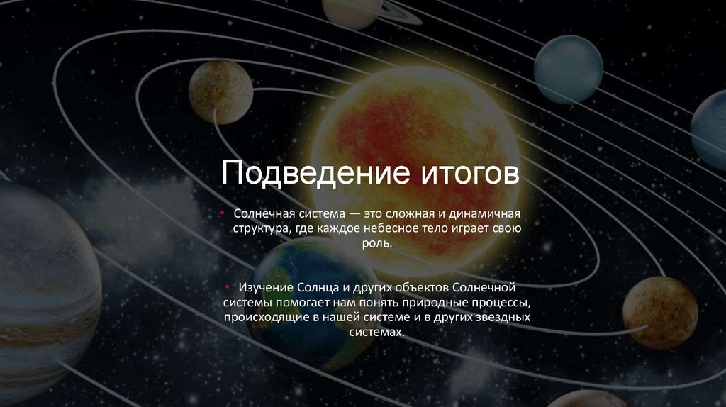 Подведение итогов• Солнечная система — это сложная и динамичная