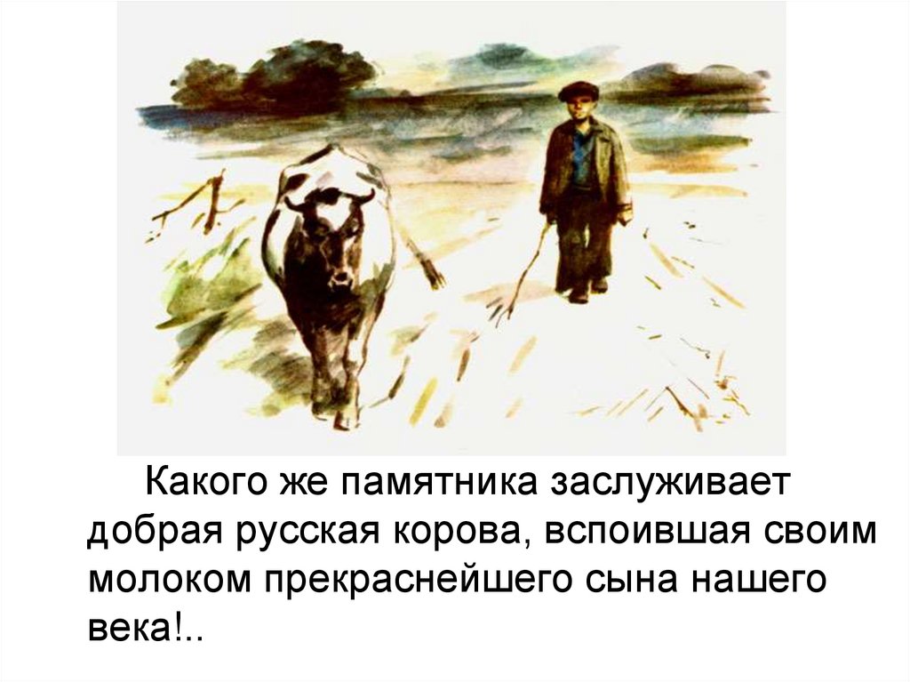 Какого же памятника заслуживаетдобрая русская корова, вспоившая своим