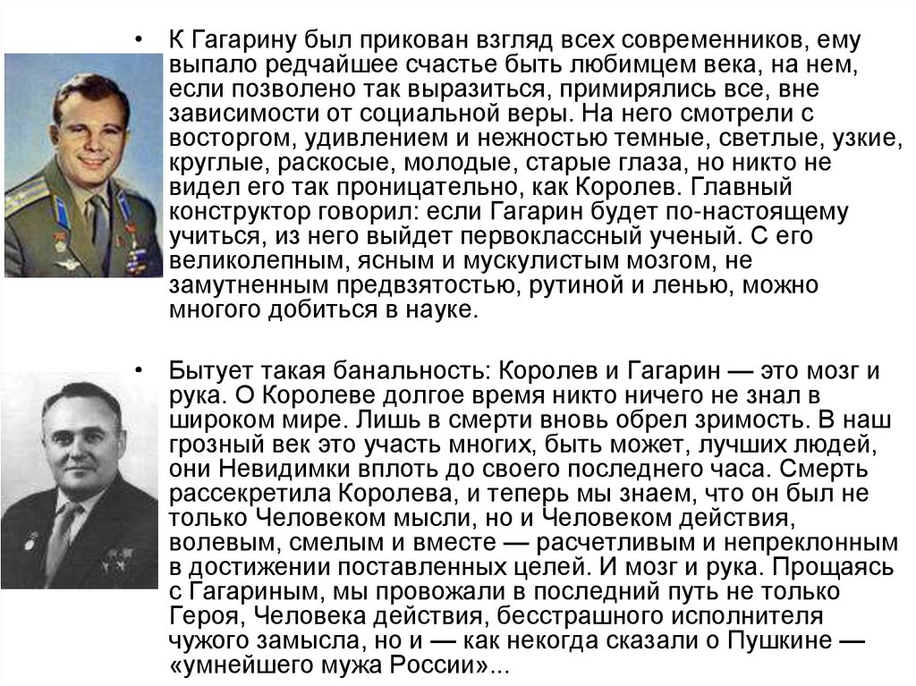 • Бытует такая банальность: Королев и Гагарин — это мозг и