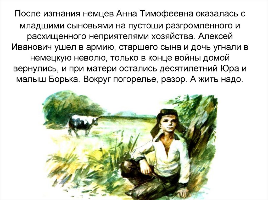9. После изгнания немцев Анна Тимофеевна оказалась с младшими сыновьями на пустоши разгромленного и расхищенного неприятелями