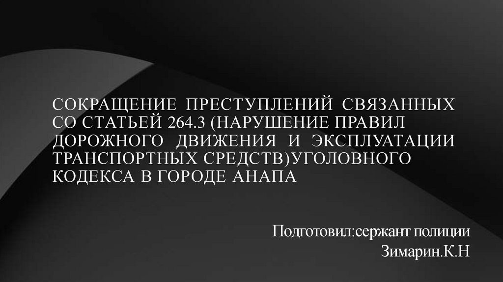 СОКРАЩЕНИЕ ПРЕСТУПЛЕНИЙ СВЯЗАННЫХСО СТАТЬЕЙ 264.3 (НАРУШЕНИЕ ПРАВИЛ
