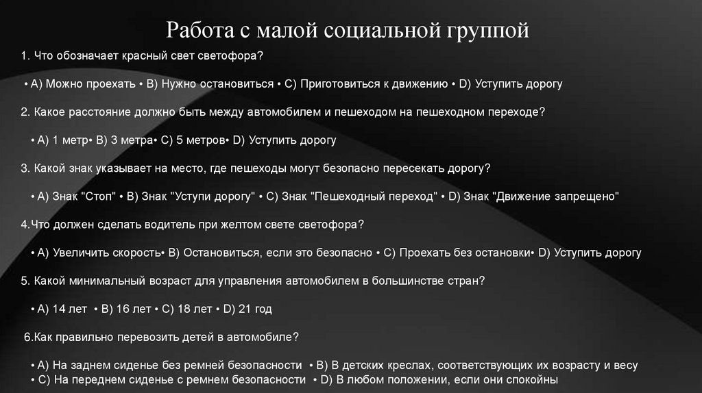 Работа с малой социальной группой1. Что обозначает красный свет светофора?