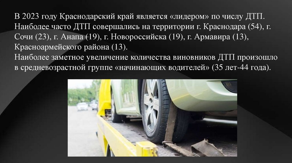 В 2023 году Краснодарский край является «лидером» по числу ДТП.Наиболее часто ДТП совершались на территории г. Краснодара (54), г.
